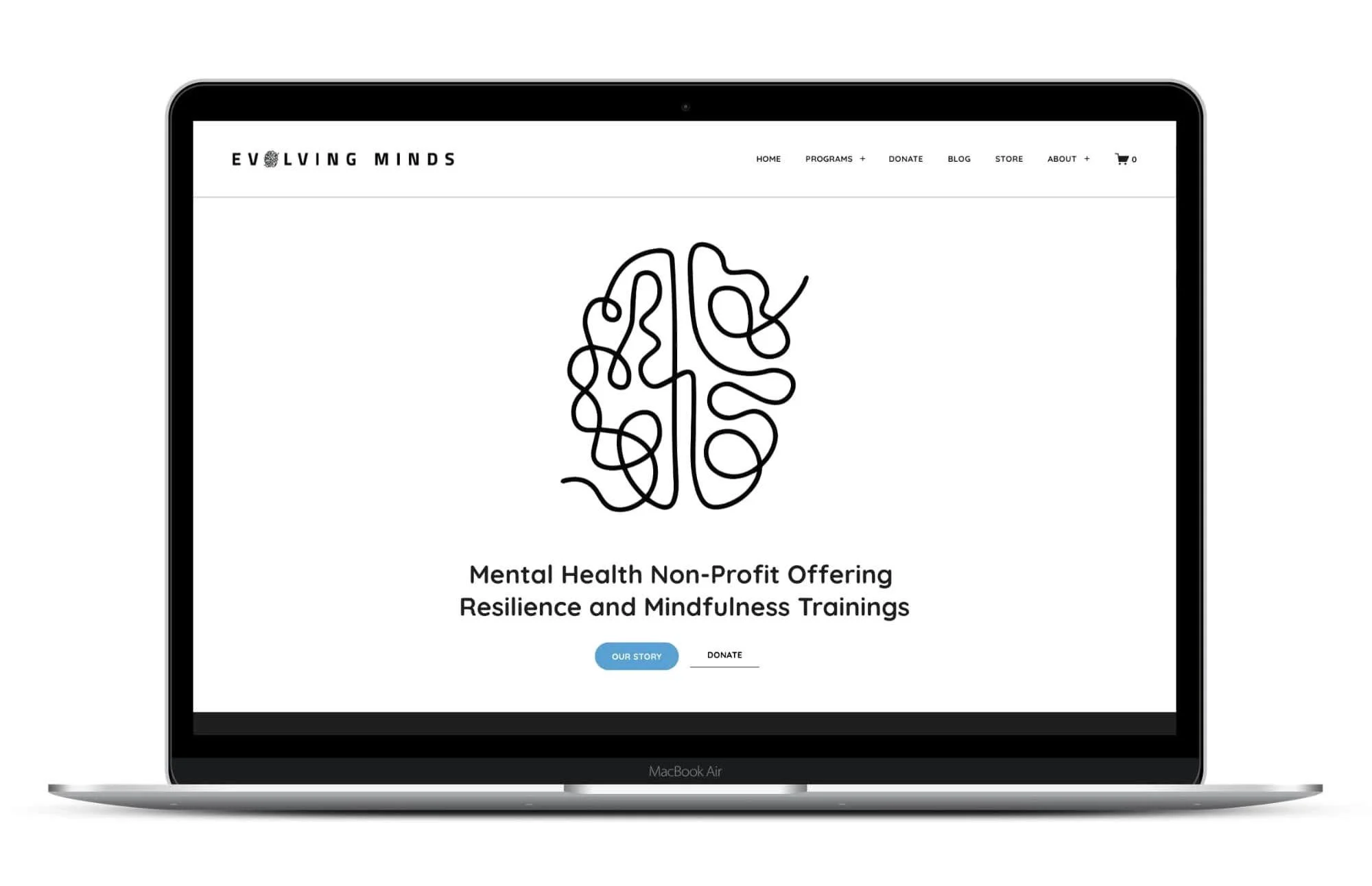 Evolving Minds is a mental health non-profit offering resilience and mindfulness programs and trainings for students and organizations. Anthony [Founder of Evolving Minds] came to me with a very specific vision. He knew exactly what he wanted the new website to look and feel like, he just needed the right developer to make it happen. His current website was not generating consistent leads, donations or merch sales. Plus, the website was outdated and did not showcase their current programs and offerings. He wanted a new website that would help catapult them into 2023 and that would help them make the shift from being a small-budget start up to becoming one of the top mental health nonprofits in the country.
