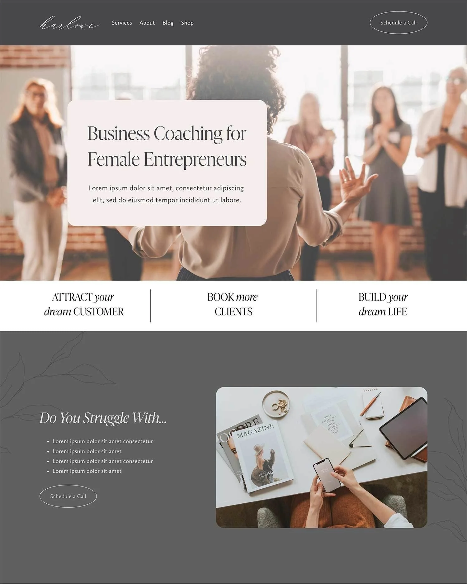 Ley Design is a Squarespace design and branding studio with more than 10 years of design and marketing experience. Their goal is to help small businesses get a professional website that puts them “neck and neck with the established industry pros”. They offer modern and minimal Squarespace Templates designed specifically for ambitious coaches and service providers. These templates are sure to take your business to the next level.
