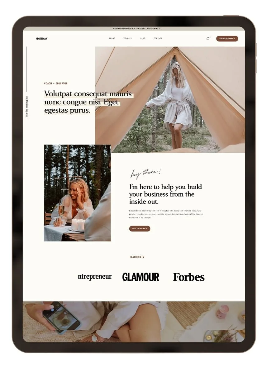 Curate a cool brand with one of Cool Factor Lab’s templates. These guys are a branding studio that crafts cool websites & marketing content for style-focused brands. They emphasize on the fact that they don’t do “boring”. Their Squarespace Templates are eye-catching, yet minimal and functional and will provide you with a website that looks high-end, without the $50k+ price tag.