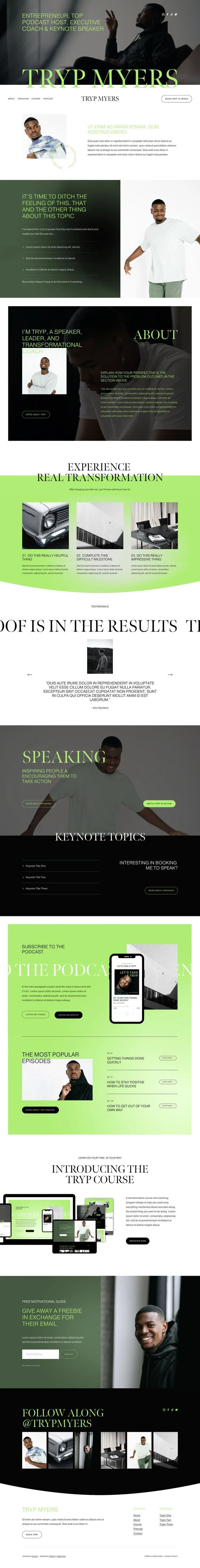 Tryp is a dynamic Squarespace template with a sleek, moody, style with lots of opportunities to showcase videos. This easy-to-customize Squarespace Fluid Engine design is made specifically for speakers, podcasters, coaches, course creators, thought leaders, & influencers.