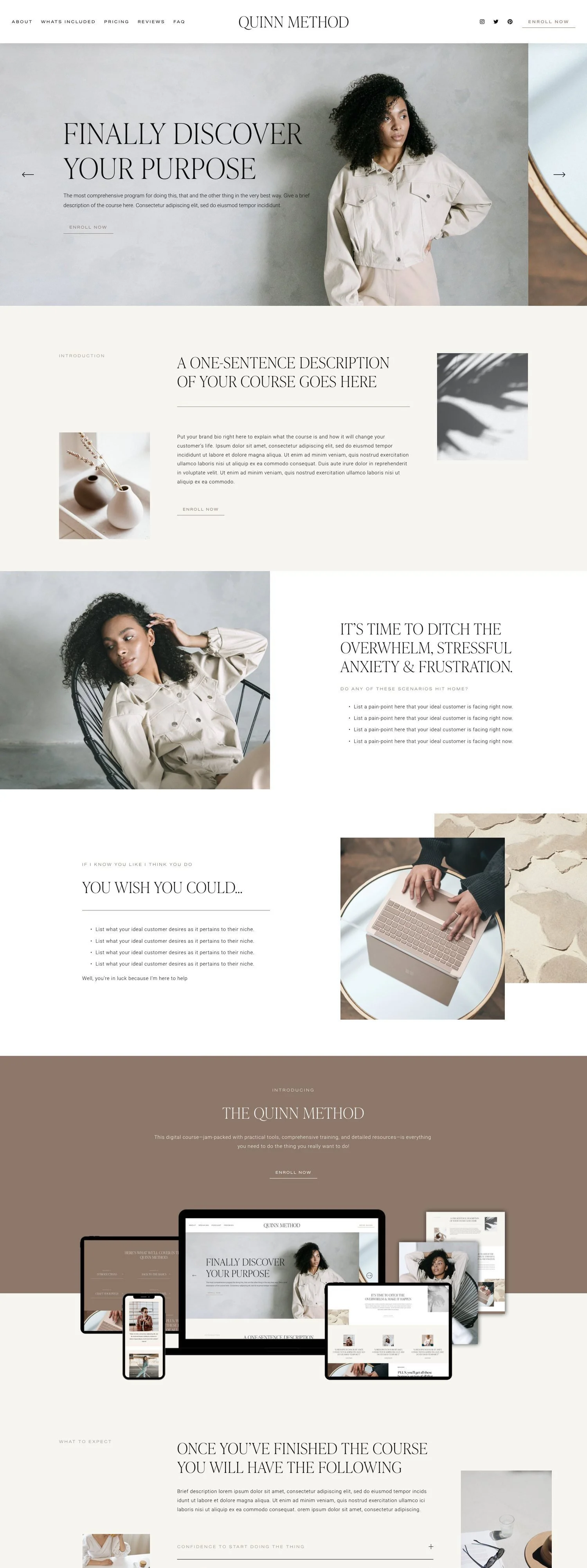 The Quinn Method by GoLive is a high-end, refined, and editorial Squarespace 7.1 Fluid Engine Template that’s perfectly crafted for marketing your coaching programs, memberships, or even an online course.